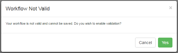 If you try and save a workflow that is not valid, you are warned and invited to enable validation mode.