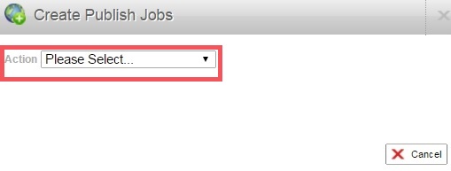 When the Create Publish Jobs pop-up appears, select the Publish action to use.