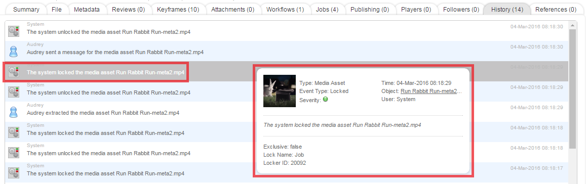 An event is something that happens in Dalet Flex at some point in time. Nearly every significant occurrence results in an event being created and stored. Event data is used extensively throughout Dalet Flex. For example, events are used for generating recent activity views as well as reports.