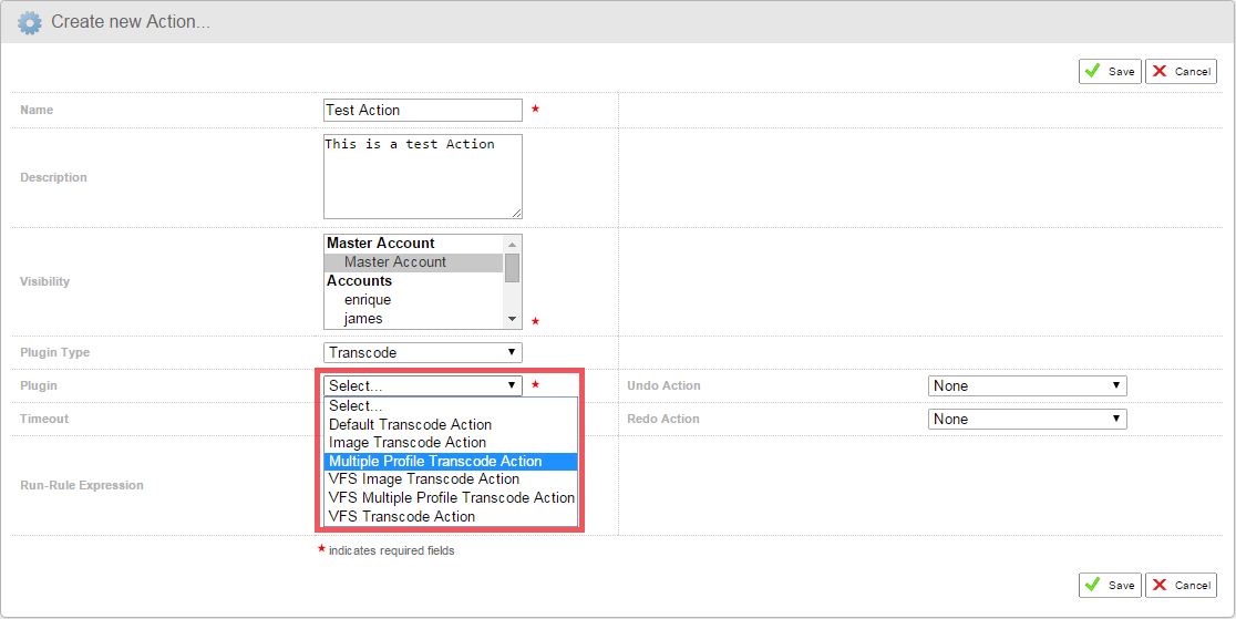 The below screen shot shows a plugin being selected when creating a new action: