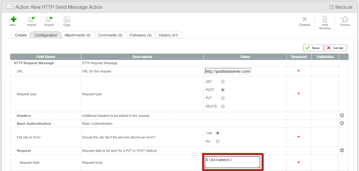 Some object types support extended configuration through an additional Configuration tab. This tab allows super users to enter further configuration information through a custom form. Within some configuration screens, there are some fields (or entire sections) that are optional. These are made available by clicking on the + symbol. If you wish to remove these configuration items later, simply click the - symbol and the options and any associated values will be deleted.