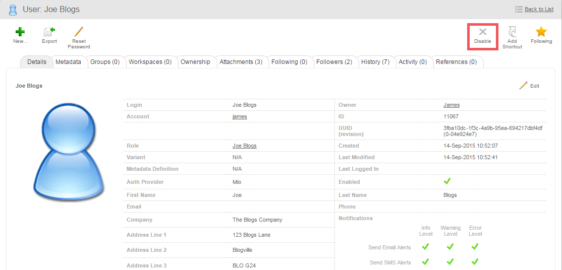 To disable an object, simply click the Disable option from the toolbar within the object setting view.