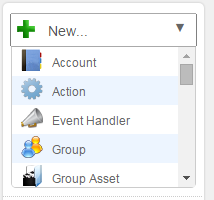 You can use the New option on the toolbar to create new objects such as assets, asset groups, resources, and so on. The toolbar is visible in every tab in Dalet Flex, so it can be accessed quickly and easily. Once you select the type of object you wish to create, you will be taken to a screen where you will be required to enter a name for the object and an optional description.