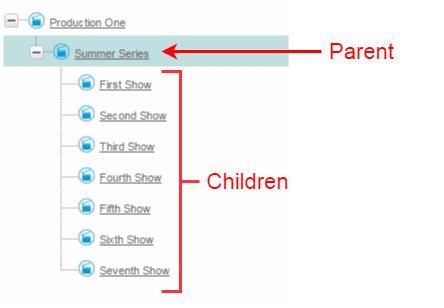 For example, Series might be a child object type of Production, and Episode might be a child object type of Series, and so forth.