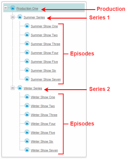 Below you can see some examples of different hierarchies with the same configuration e.g. Production > Series > Episode: