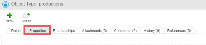 If the object type you have chosen as your root is a user defined object type, a tab will appear on the global navigation alongside the system object types. So in the example below, you can see the Production object type has been specified as the root Object type in the hierarchy.