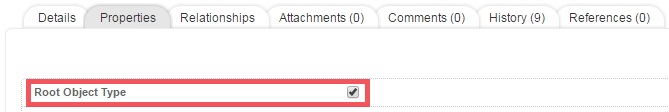 In the Details section for the object type you wish to set as your root, click the Properties sub-tab.