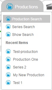 On the global navigation, hover over the tab for your root object type. For example, Productions.