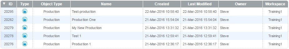 Select the object type you wish to search for, e.g. Production. If you wish to search through all your object types, you can click the Everything option.