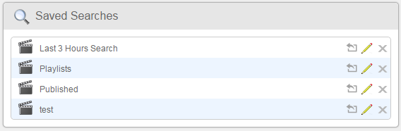 You can set up saved searches in order to make it easier to execute frequently used queries. Once saved, searches can be shared with other accounts, user groups, and workspaces. The Saved Search button can be found in all dashboards, underneath the search filter options as well as in the toolbar on the right hand side of the screen.