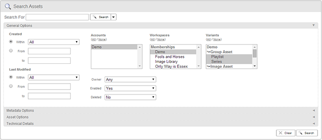 Click the Search button to initiate the search, or the Clear button, to clear the current search criteria, and start again.