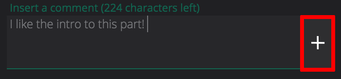 In the Insert a comment box, enter your comment, and click the + icon.