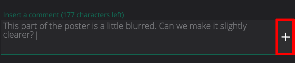 In the Insert a comment box, enter your comment, and click the + icon.