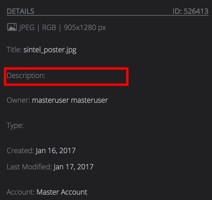 You can view and change the summary details for an image asset directly in the Details tab.