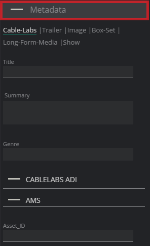 Metadata: Here you can select metadata schema options to help in your search. Any metadata schema that is associated with assets you have uploaded will appear here.