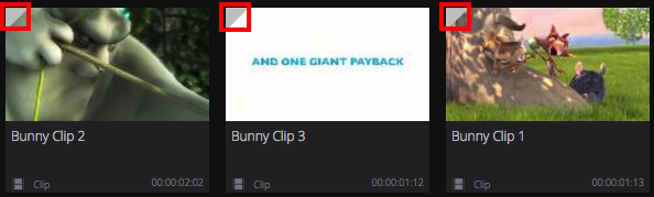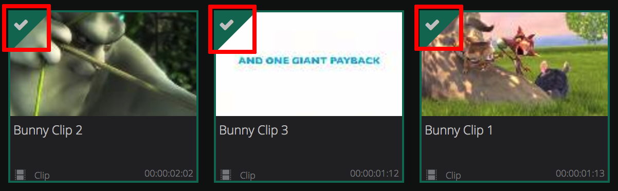 When an asset / clip is selected, a tick symbol will be displayed.