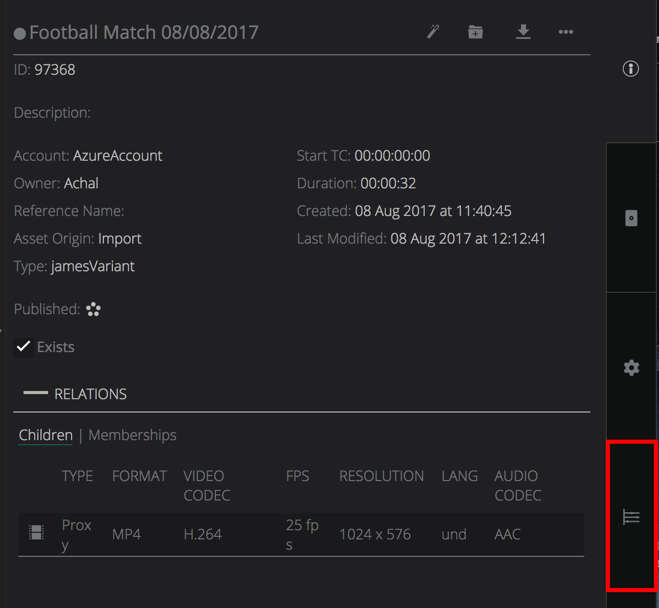icon and the metadata fields are displayed.
