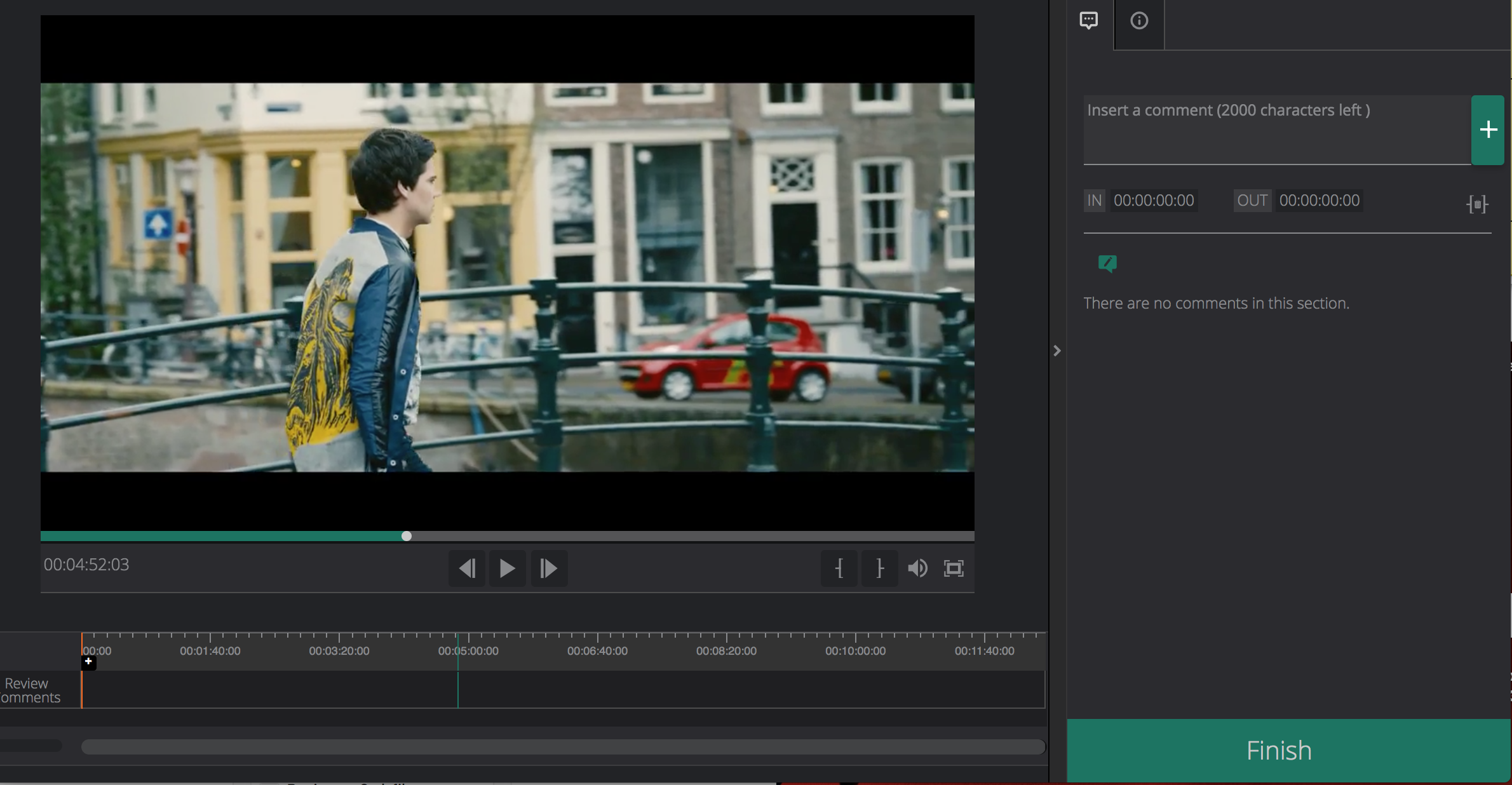 The review session timeline gives you an overview of exactly where comments have been posted against an asset. If you click anywhere on the timeline, the player automatically jumps to that specific point in the video.