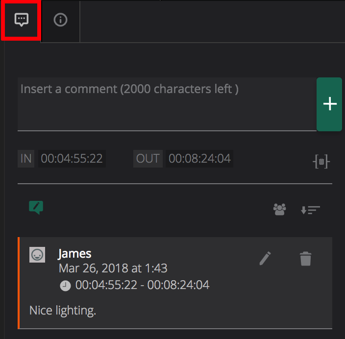 Comment tab: This enables you to post a comment against a particular frame or a series of frames in the asset.