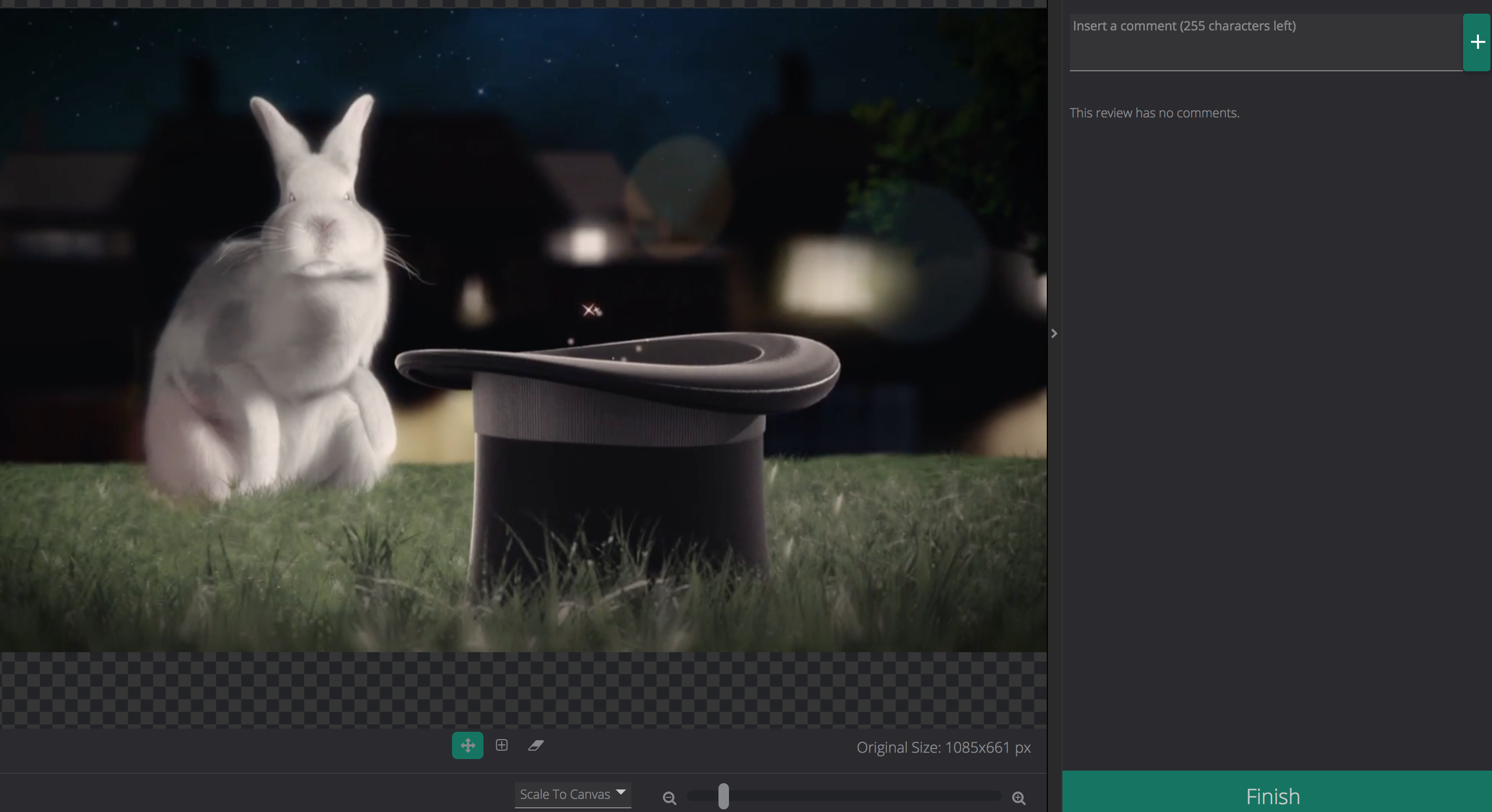 As previously mentioned, the canvas enables you to view your image asset. It also enables you to comment against the image asset.