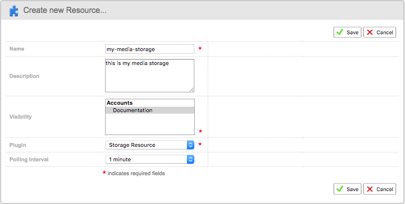 In the Create new Resource… screen, you will need to fill in the details for your  storage resource.