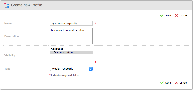 In the Create new Profile… screen, you will need to enter the details for your transcode profile.