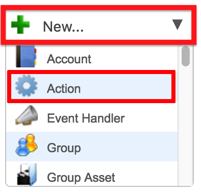 From the toolbar in the Dalet Flex Console, click New and select Action from the drop down menu.