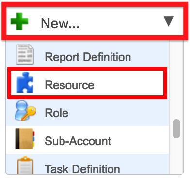 From the toolbar in the Dalet Flex console, click New and select Resource from the drop down menu.